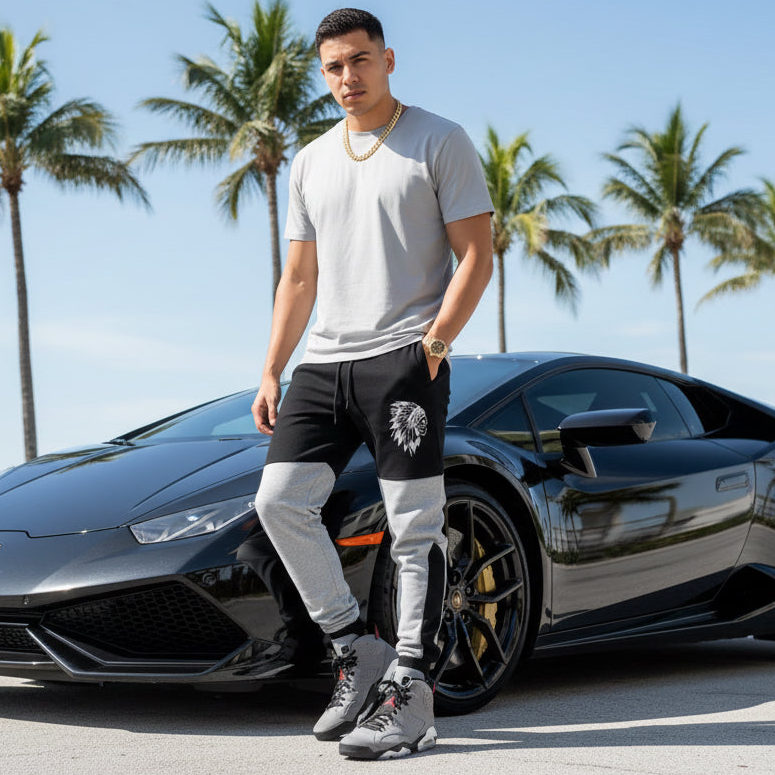 *CHIEFIN’* (BLACK-GREY) JOGGER SWEATPANTS (CUT & SEW)