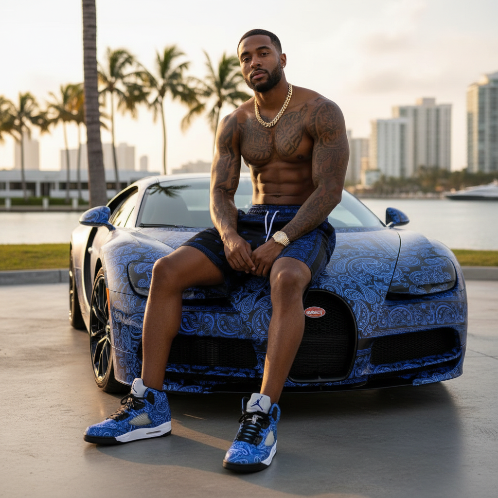 *BANDANA SHORTS* ~Lightweight Summer Activewear~ (Blue bandana on black)