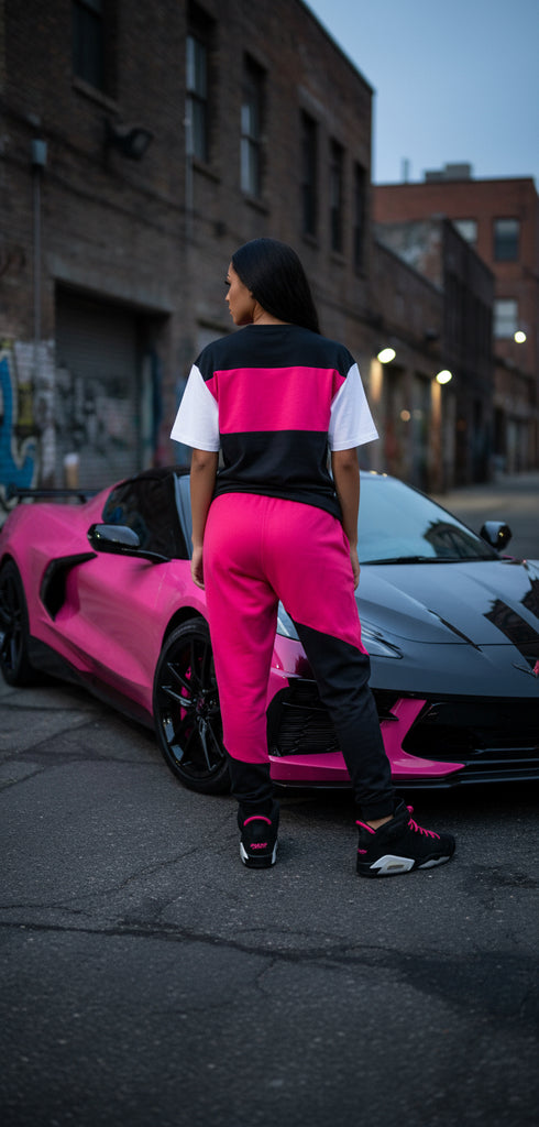 *23* (BLACK-HOT PINK) JOGGER SWEATPANTS (CUT & SEW) (UNISEX)
