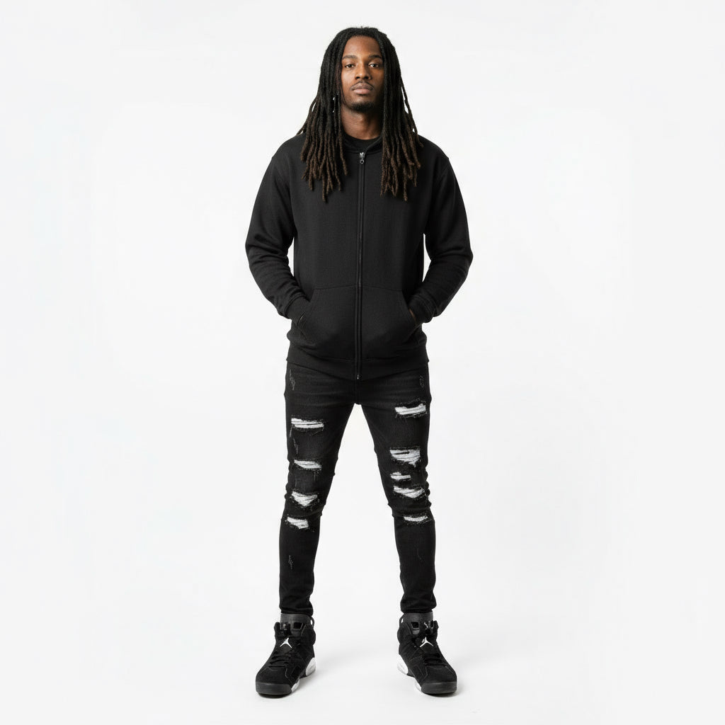 *COTTON BEST* (BLACK) ZIP UP HOODIES (HIGH GRADE COTTON BLENDS)