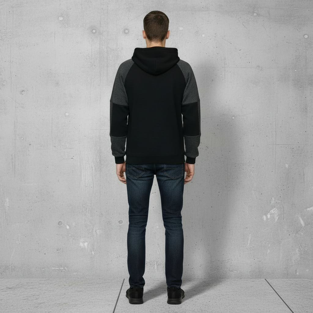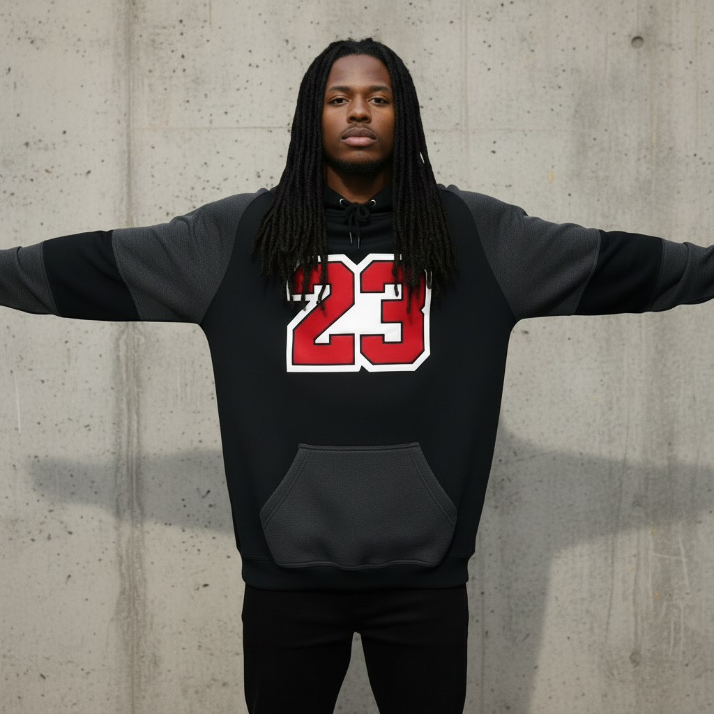 *23* (BLACK-DARK GREY) LUXURY PULLOVER HOODIES (CUT & SEW)(UNISEX)