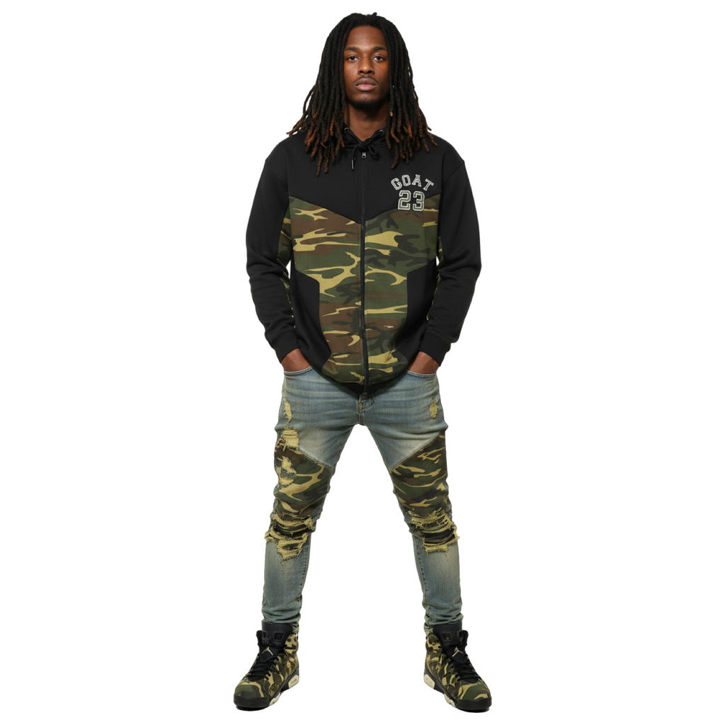 *23 GOAT* CAMOUFLAGE LUXURY ZIP UP HOODIES (CUT & SEW) (EMBROIDERED LOGO)