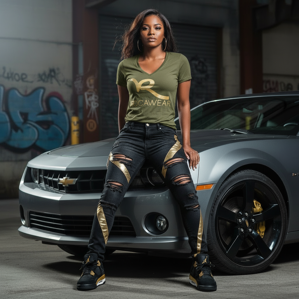 *ROCAWEAR* (OLIVE) V-NECK TOP FOR WOMEN (Vintage NOS)