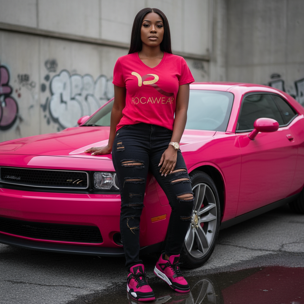 *ROCAWEAR* (RIO-RED) WOMEN’S V-NECK TOP (Vintage NOS)
