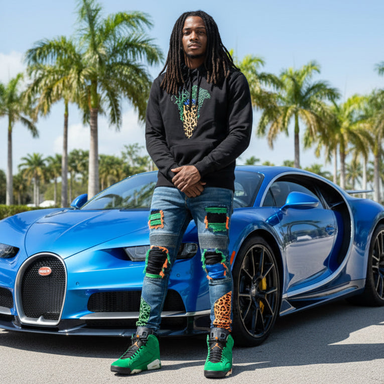 *CROOKS & CASTLES* (BLACK) ~JUNGLE SNOOKA BANDUSA~ PULLOVER HOODIES FOR MEN