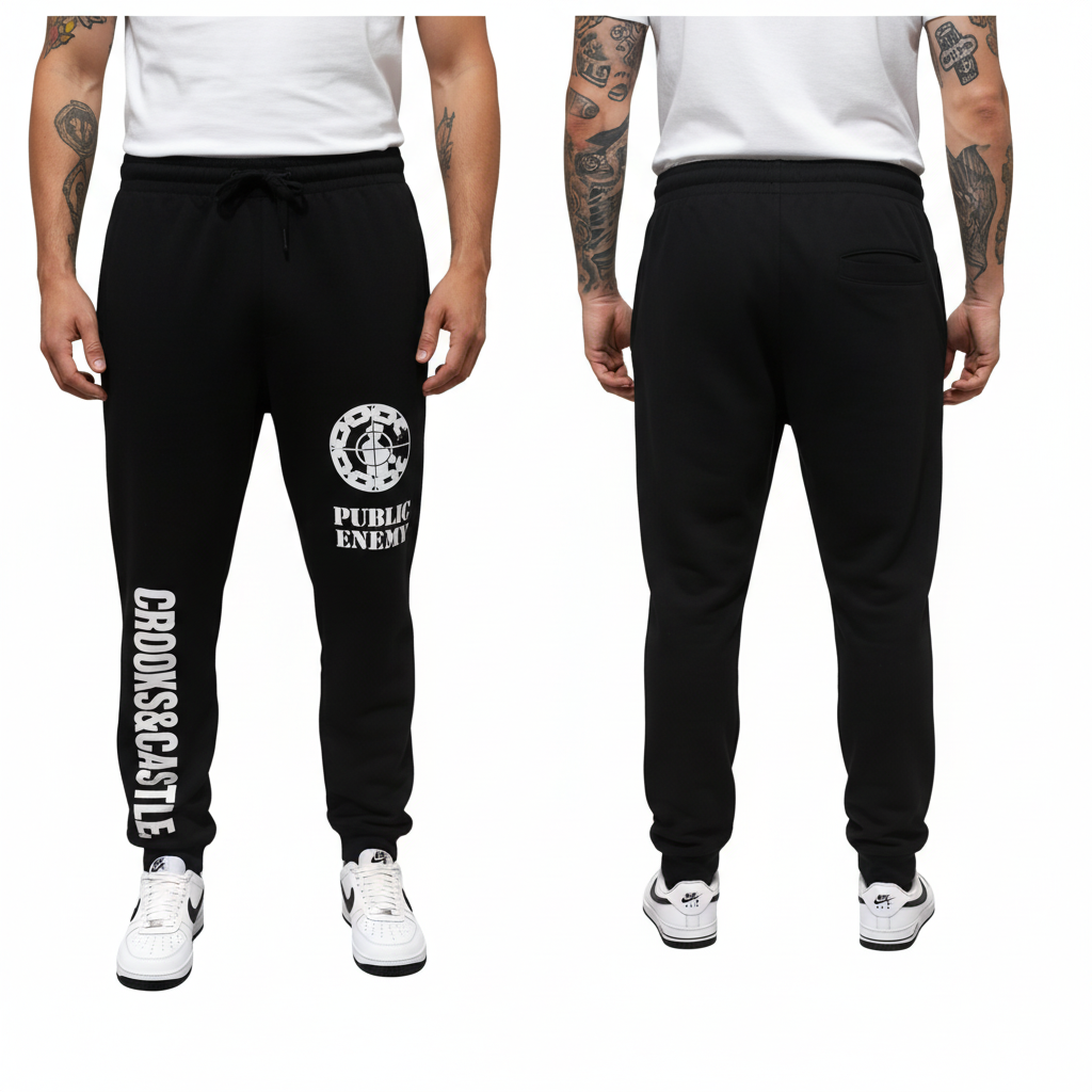 *CROOKS & CASTLES* (BLACK) ~PUBLIC ENEMY~ SWEATPANTS FOR MEN