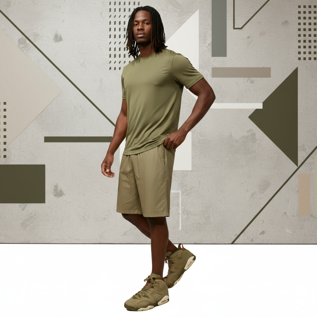 ^ABLANCHE^ ~KHAKI PLEATHER~ LINED SHORTS FOR MEN (CASUAL)