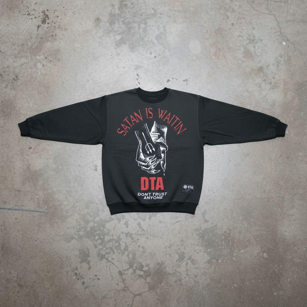 Show your streetwear pride with the DTA *SATAN IS WAITIN* Crewneck Sweatshirt at half-price. Offering the classic streetwear look with big savings, this sweatshirt is perfect for the hardcore fan. Save and look great today!
