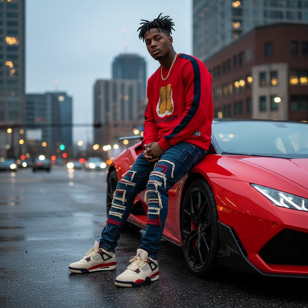 *KOODOO* (RED-MULTI) LUXURY CREWNECK SCOOP TAIL SWEATSHIRT