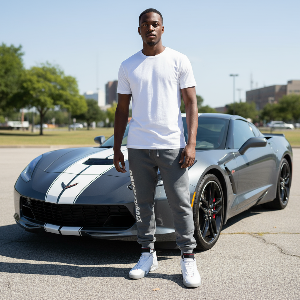 ^HUSTLE GANG^ (GREY) OPEN LEG SWEATPANTS