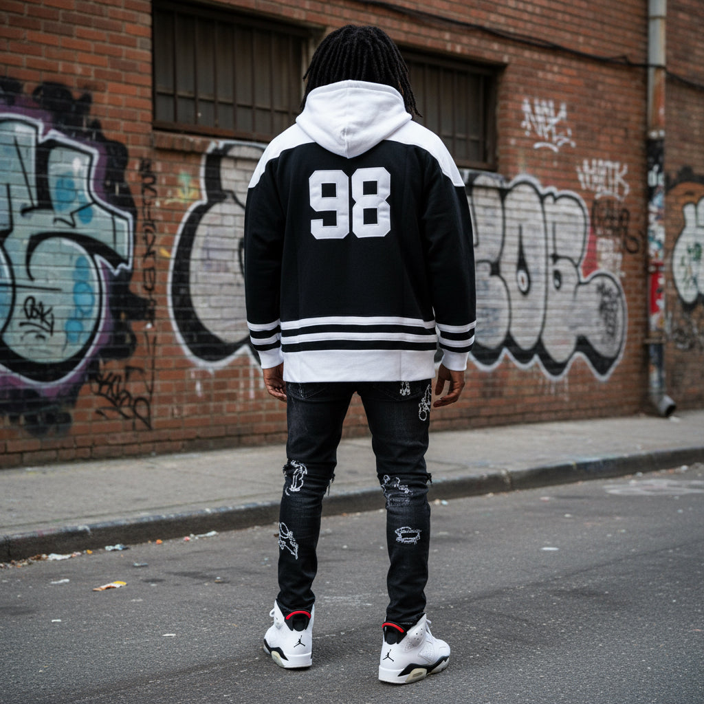 *THE NEXT ONE* JERSEY STYLE COTTON HOODIES (EMBROIDERED) (BLACK-WHITE)