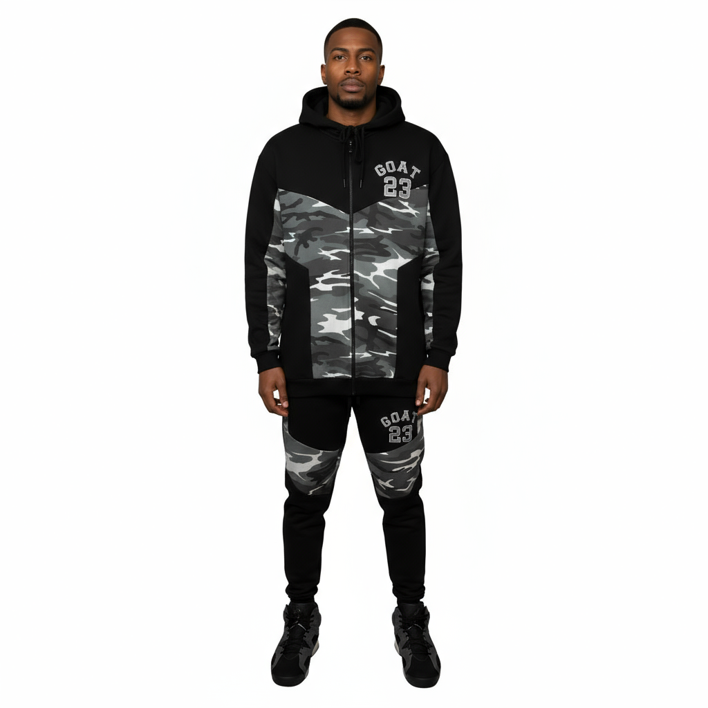 •23 GOAT• (GREY-CAMO) LUXURY HOODED ZIP UP SWEATSUITS