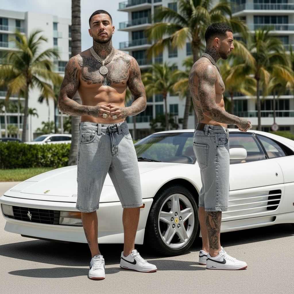 *SOUTHPOLE* (ACID BLUE) ~RIPPED~ •DENIM SHORTS• (WAIST 30”)