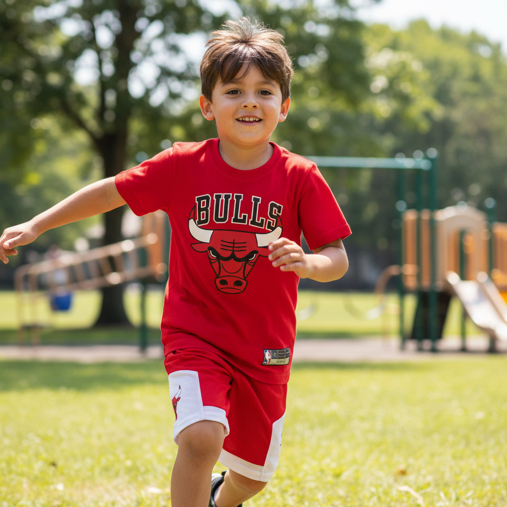 *CHICAGO BULLS* ~KIDS MESH BASKETBALL STYLE SHORTS~ (RED-WHITE) (140 cm WAIST)
