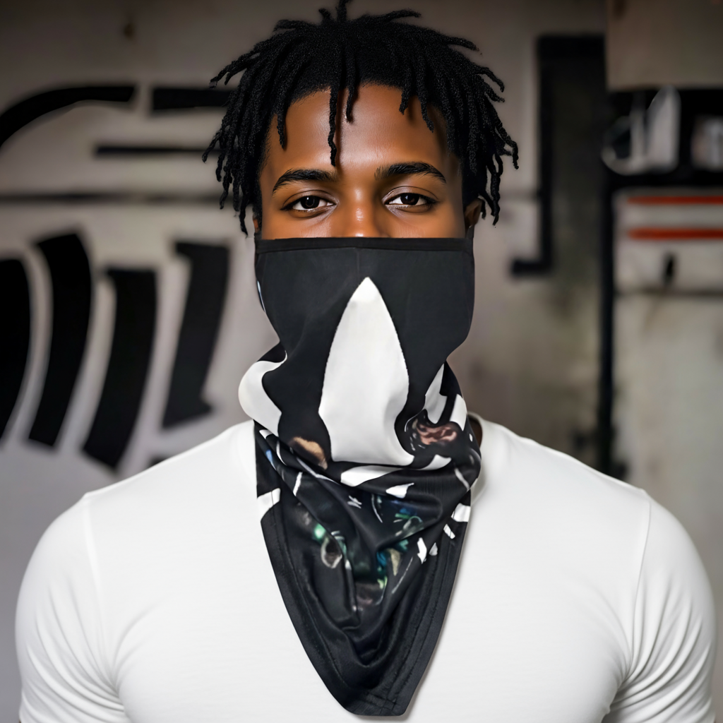Versatile design can be utilized as protective facial covering or as an alternate head and ear covering when temperatures drop.