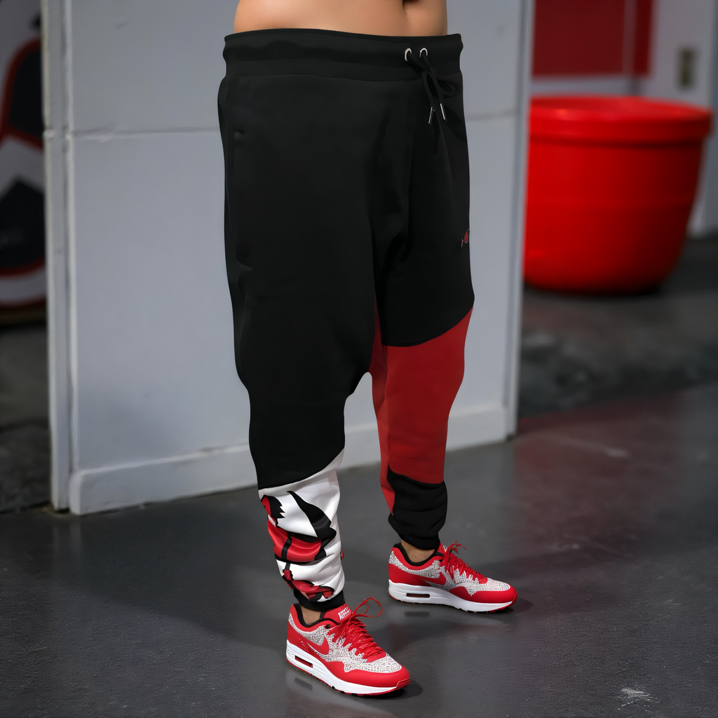•CHAMPION CHIEF• (RED-MULTI) LUXURY JOGGER SWEATPANTS (CUT & SEW) (EMBROIDERED LOGO)