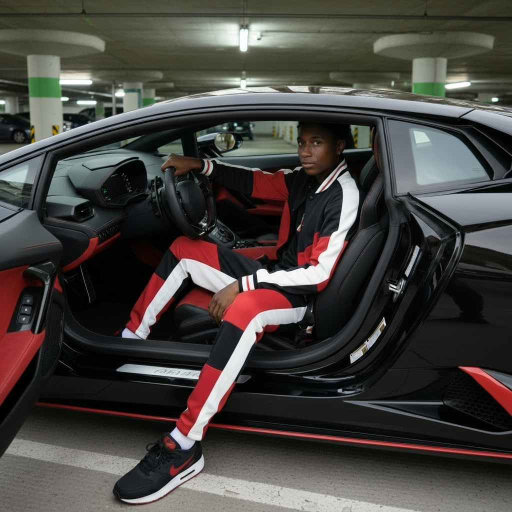 •UCXX• (BLACK-RED) ZIP UP TRACKSUITS (ACTIVEWEAR)