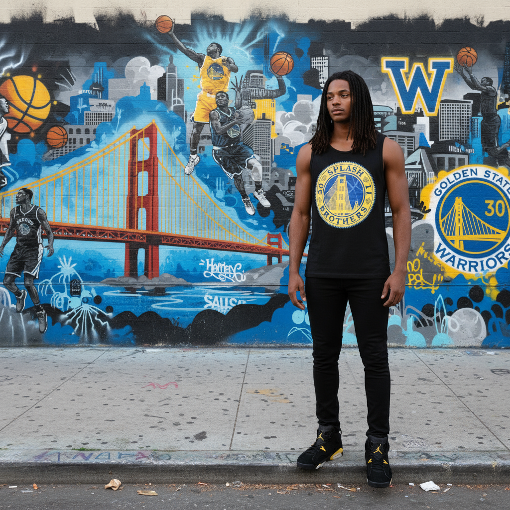 ** (BLACK) ~SPLASH BROTHERS~ HEAVY COTTON JUMBO PRINT TANK TOPS