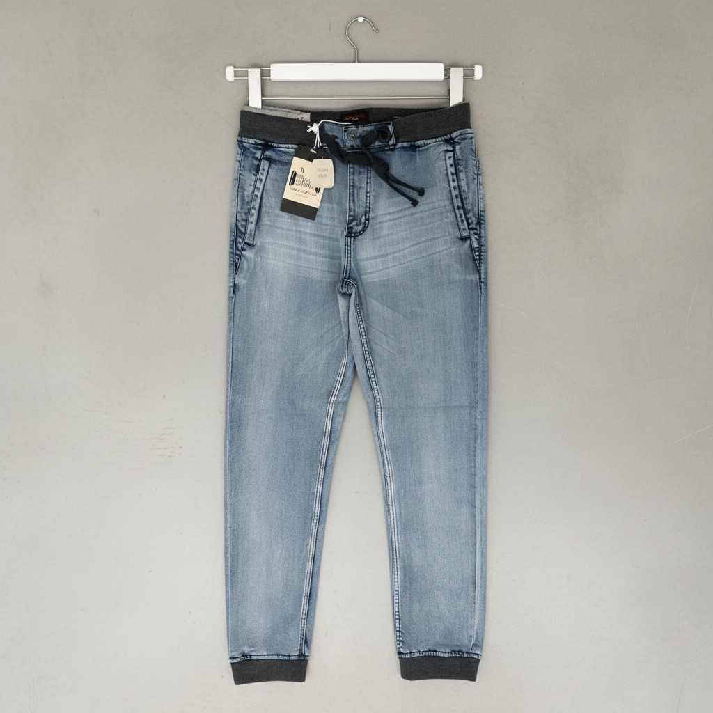 *DNMX* JEANSWEAR COMPANY STRETCH DENIM JOGGER PANTS (DARK GREY CUFF / WAISTBAND)