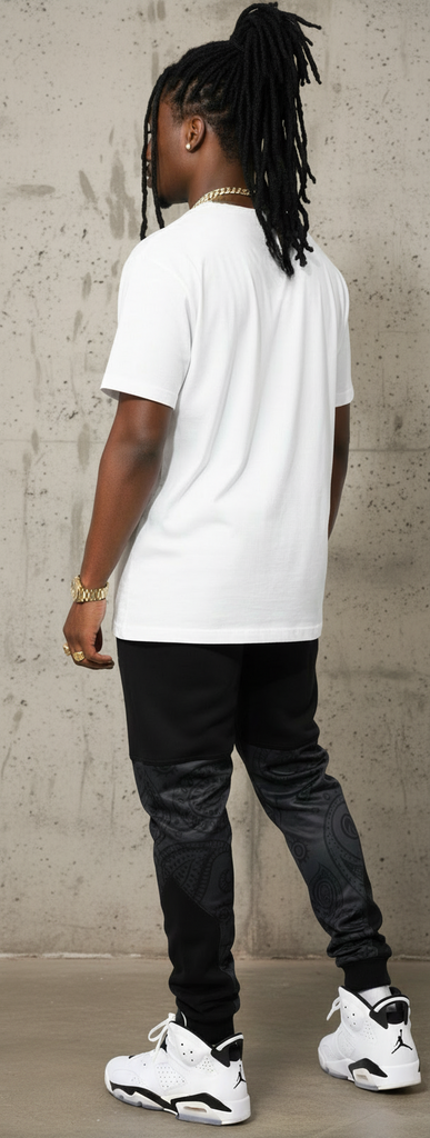*23 TRIPLE BLACK* •LUXURY BANDANA JOGGER SWEATPANTS• (CUT & SEW)(EMBROIDERED LOGOS)