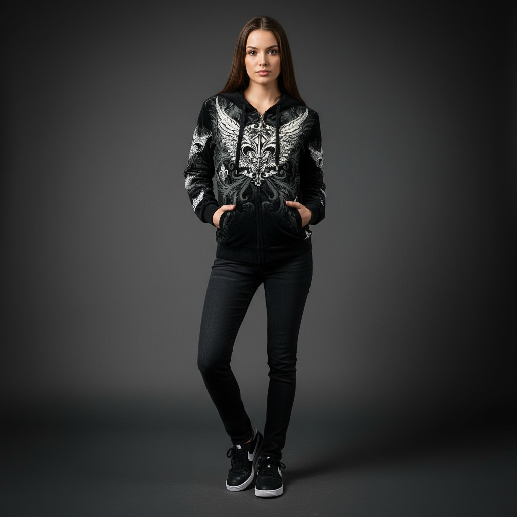 *BUS STOP* WOMEN'S VELOUR (BLACK) FULL OUTFITS (HOODED WITH ZIP)